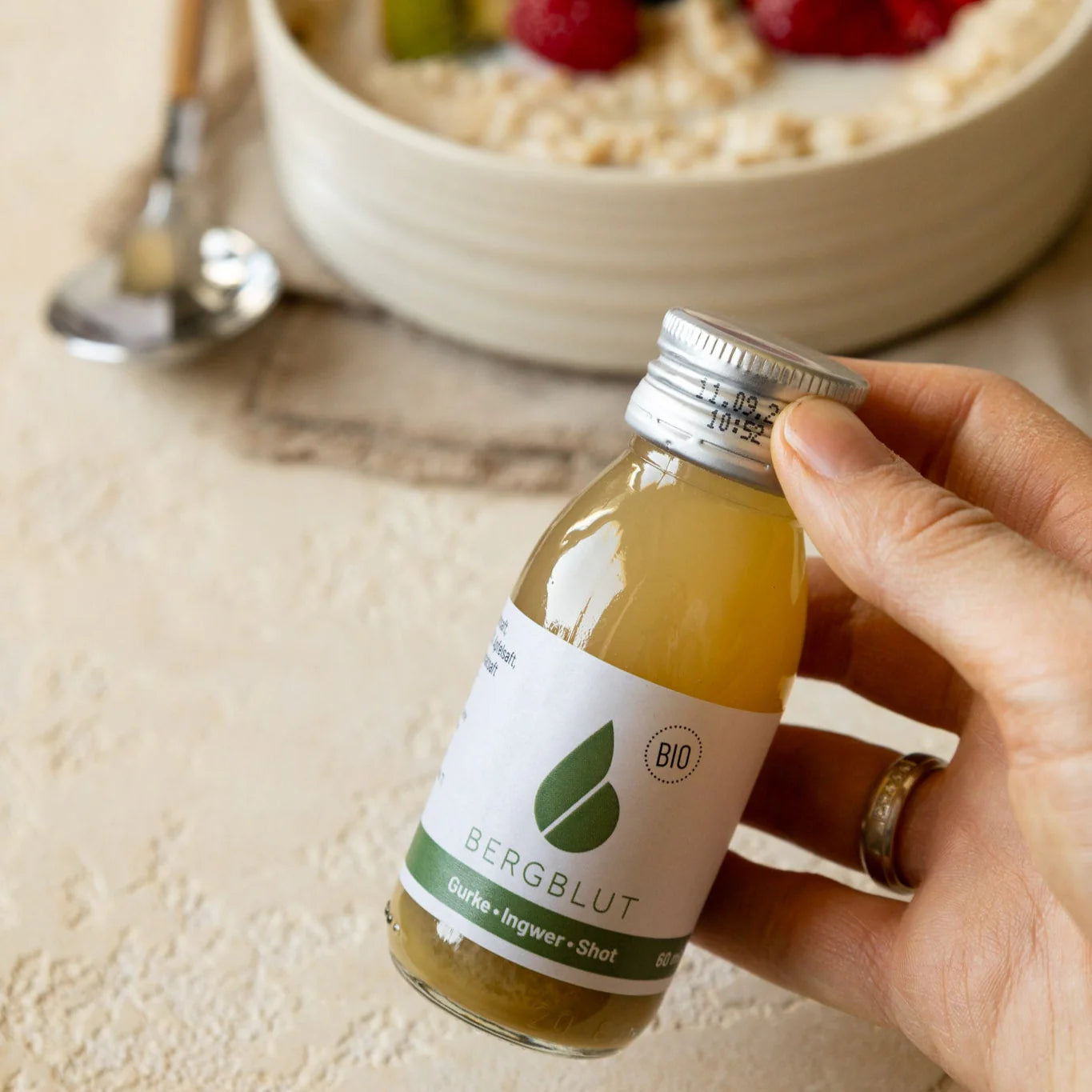 Ganz einfach: Jeden Tag einen Shot, am besten morgens auf nüchternen Magen. So kann dein Körper die Nährstoffe optimal aufnehmen und du startest energiegeladen in den Tag.